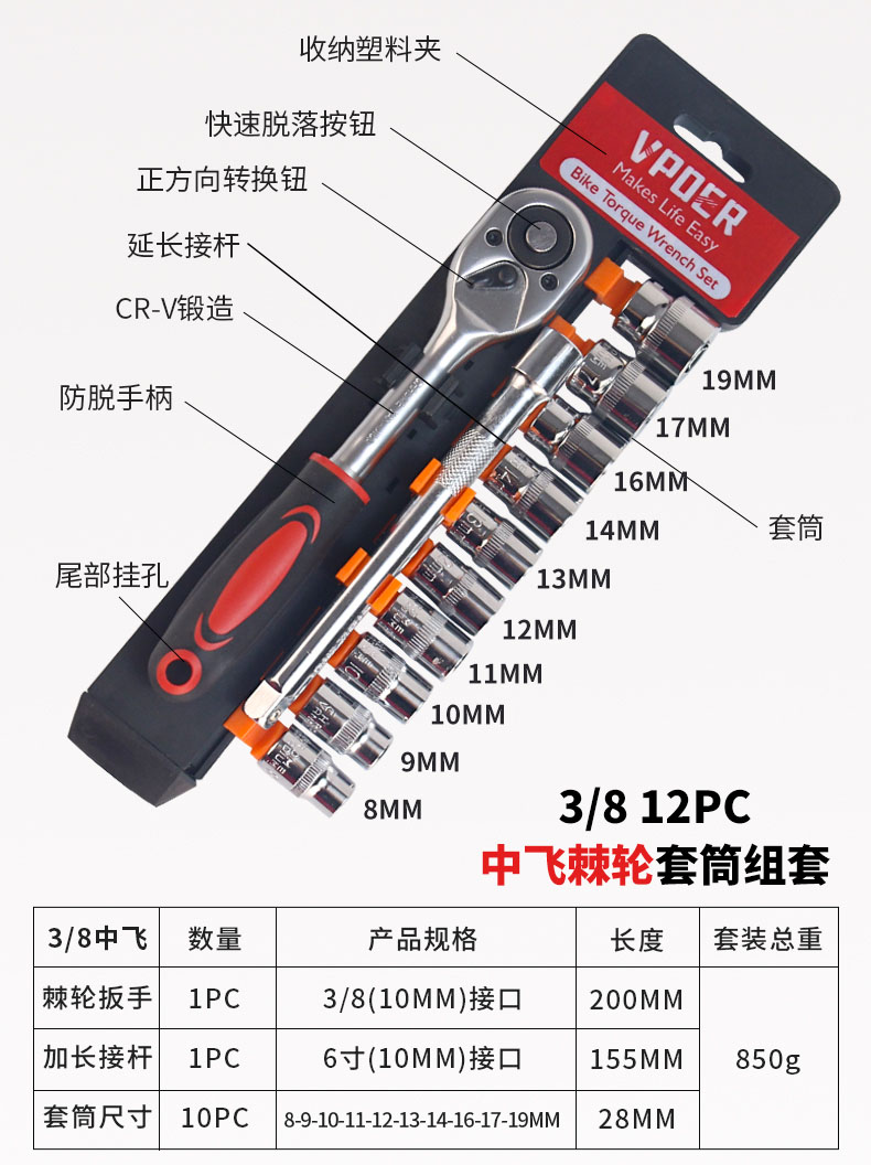 中飞棘轮套筒组套
